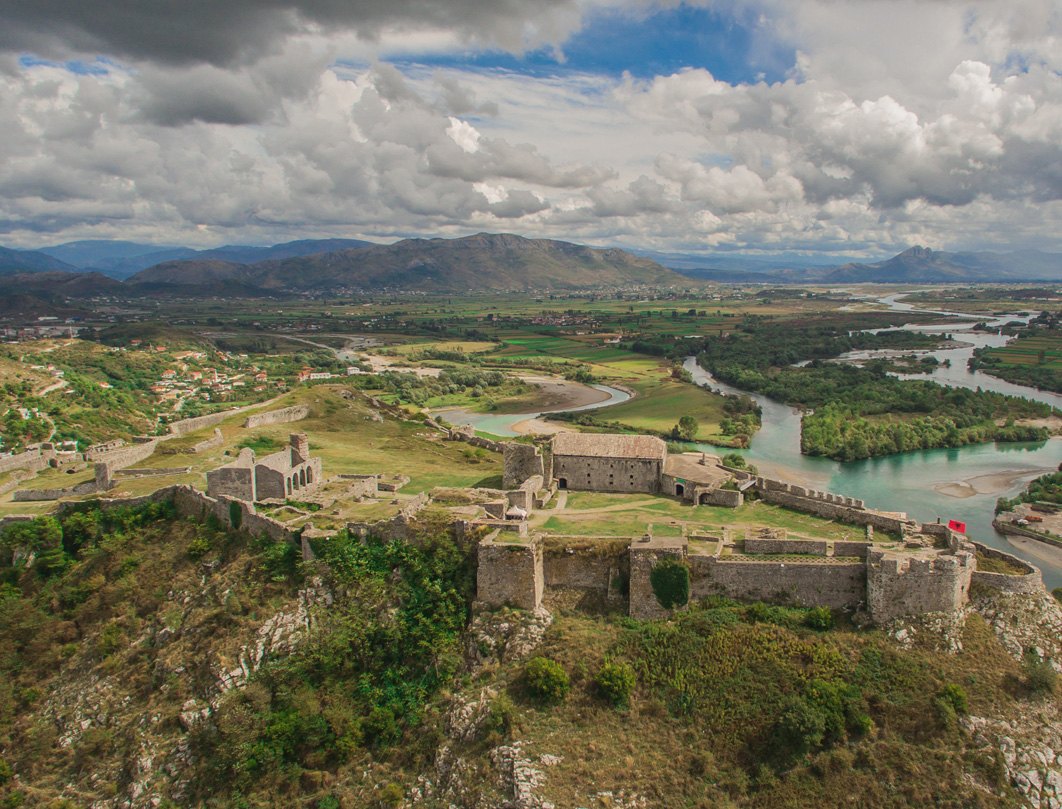 Rozafa si gode di una splendida vista sugli Alpi Albanesi e sul lago di