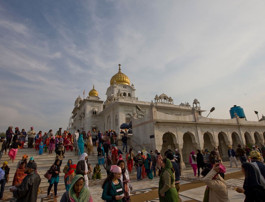 Visita del tempio Sikh “ Gurudwara Bangla sahib”, un tempio maestoso, con delle grandi cupole dorate. Si accede al tempio a piedi nudi (sono vietate anche le calze) insieme ai fedeli che si riuniscono in preghiera. All'interno del tempio si trova il "lago miracoloso" dove i credenti si immergono per ricevere benefici. Potrete osservate la cucina del tempio, che ogni giorno ospita miglia di persone, a cui vengono distribuiti pasti gratuiti. Vista panoramica del ’India gate, 'India gate, arco eretto in memoria della prima guerra mondiale, a seguire si visiteranno dall’esterno il Palazzo del Parlamento e la casa del Presidente dell’India, in perfetto stile britannico.