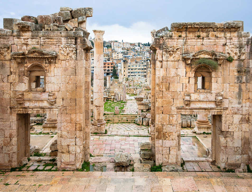 Arrivo a Jerash e pranzo in ristorante. Visita del sito, caratterizzato dal bellissimo foro ellittico e dalla grandiosa via colonnata intorno alla quale sorgono i monumenti più significativi quali il tempio di Zeus, il teatro, il ninfeo, la porta di Adriano ecc. Nella parte alta del sito si trovano anche i resti di tre chiese bizantine.