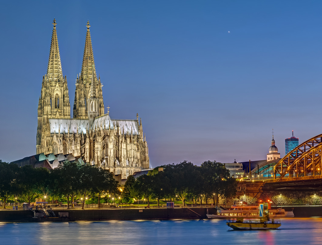 Prima colazione in hotel e visita guidata di Colonia, antica fortezza romana sul Reno, nel Medioevo divenne centro culturale, artistico, religioso e commerciale di primissima importanza. Il suo bellissimo Duomo, costruito nel XIII secolo in puro stile gotico. Sono famose le vetrate delle grandi finestre, gli otto arazzi su disegni di Rubens e la preziosissima Arca che conserva le reliquie dei Re Magi. Anche il Municipio, risalente al XII secolo, presenta opere d'arte che vanno dal periodo medievale al Rinascimento.