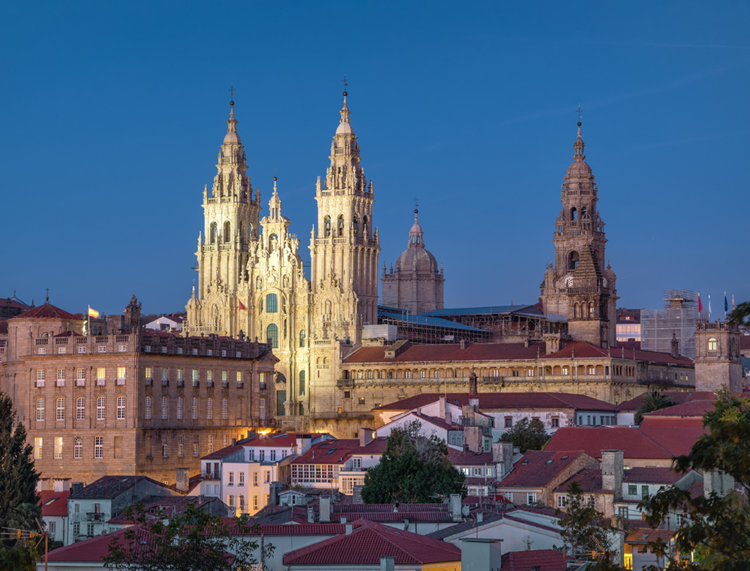 Prima colazione. La città deve il suo nome all’Apostolo Santiago, del quale qui vennero rinvenuti i resti nel secolo IX. Questa scoperta porta rapidamente il luogo a divenire punto di pellegrinaggio da tutta Europa. Tutta la città è cresciuta all'ombra della Cattedrale eretta nel luogo del ritrovamento. Al mattino presto visita guidata della città che finisce alla porta della Cattedrale intorno alle 11’30. In questo modo avremo un po’ di tempo per vedere l’interno e per chi lo desiderasse assistere alla famosa “messa del pellegrino” dove si vede spesso volare il ‘botafumiero’ (un gigantesco incensiere). Tempo libero per una gradevole passeggiata delle per i vicoli del centro storico dove ogni angolo è una lieta sorpresa. Alle ore 14’00 partiremo per la tappa finale del pellegrinaggio medievale Finisterre (dove fino al XVI secolo si credeva che finisse la terra), per vedere un paesaggio di mare spettacolare. Ritorno a Santiago. Cena e pernottamento