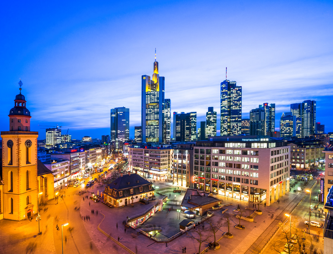 quindi per Francoforte, città distrutta per l’80% nella II guerra mondiale,