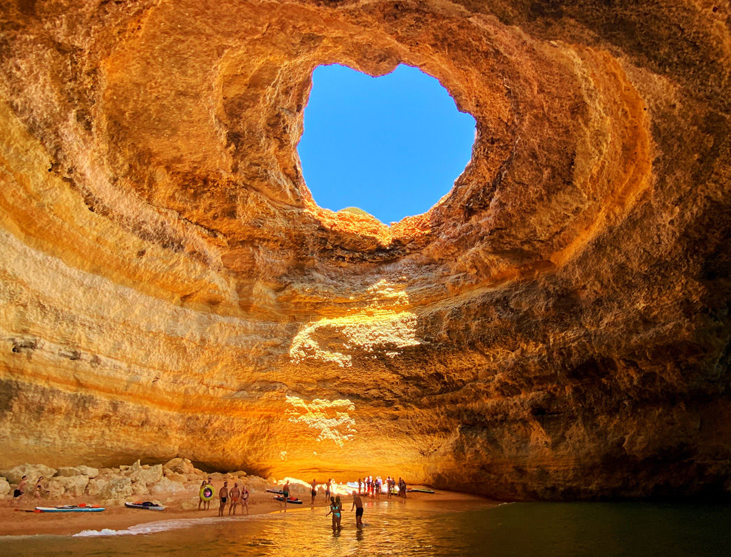 Prima colazione. Algarve è soprattutto sinonimo di mare e nella storia del Portogallo punto di partenza della grande esplorazione dei mari dal secolo XV a seguire: tutta la costa africa, Angola, capo di Buona Speranza, Mozambico, India, Stretto di Malacca, Timor…. Inizieremo nostra visita con Lagos porto molto legato a quel periodo, e che oggi e una tranquilla cittadina con tesori come la sua chiesa di San Antonio, con una decorazione barocca impattante. Passeremo per la Piazza de D. Henrique con ampia vista sul porto, e nel suo angolo si trovava l’antico mercato degli schiavi, di enorme importanza per le nuove territori colonizzati. Continueremo con la visita al belvedere della Ponta de Piedade con impressionante vista della costa. Per ultimo faremo una breve crociera i che ci permetterà vedere la famosa grotta de Benagil, e altre formazioni rocciose singolari della costa in contrasto con i colori di un’acqua verde e pulita. Ritorno in hotel. Cena e pernottamento.