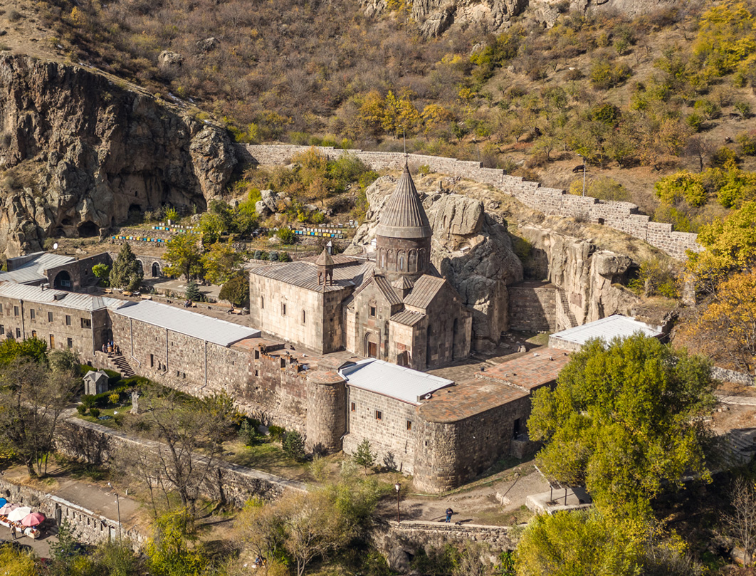 Dopo la prima colazione, il viaggio riprende verso Qarahunj, lo “Stonehenge d’Armenia”, un sito risalente all’età del bronzo formato da 204 megaliti disposti in circolo o lungo ampie linee curve, disseminato di tombe risalenti al 3.000 a.C. Sosta alla Cascata di Shaki, dove le acque del fiume Shaki si gettano da una parete di basalto alta 18 metri e larga 40 a creare uno dei luoghi più naturalisticamente più belli dell’Armenia. Proseguimento a Yeghegnadzor, dove si farà il pranzo presso una cantina vinicola locale a conduzione familiare con degustazione di vini, vodka e brandy. Proseguimento verso la regione di Gegharkunik e verso l’altipiano centrale armeno che si raggiunge superando il Passo di Selim. Qui si farà una sosta per visitare il caravanserraglio degli Orbelian, una struttura in blocchi di basalto a tre navate utilizzata dalle carovane che percorrevano l’antica Via della Seta, che testimonia la rilevanza dell’Armenia come importante snodo commerciale tra Oriente e Occidente. Dopo aver attraversato l’altipiano centrale armeno con paesaggi indimenticabili di montagne, vallate rigogliose e prati verdeggianti si raggiunge il Lago di Sevan, lo “Smeraldo d’Armenia”, uno dei laghi alpini d’acqua dolce più elevati al mondo, situato a 1900 metri di altitudine. Sosta al villaggio di Noratus, famoso per il suo cimitero monumentale, pieno dikhatchkar (le pietre scolpite in forma di croce tipiche dell’arte armena) risalenti a un periodo che va dal IX al XVIII secolo. Arrivo a Tsaghkadzor, rinomata località sciistica durante l’Unione Sovietica, e pernottamento.
