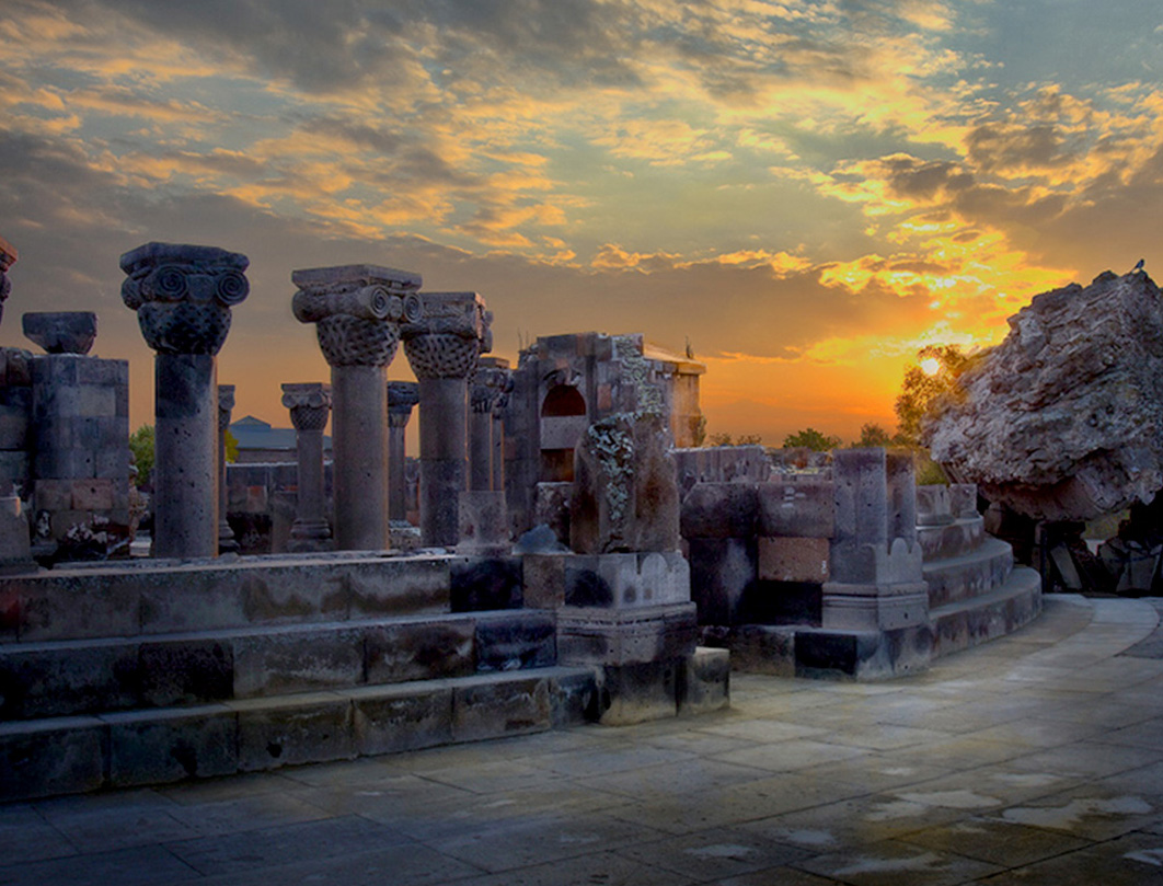 Dopo la prima colazione, partenza per Aknalich, un villaggio popolato dagli Yazidi, una comunità di etnia curda di origine irachena che pratica una propria religione derivata dallo Zoroastrismo con influenze islamiche e cristiane. Visita del grande tempio dedicato a Melek Tawous, il Dio Pavone e proseguimento alla città santa di Echmiadzin, soprannominata il “Vaticano Armeno” perché sede del Catholicos della Chiesa Apostolica Armena. Visita della Cattedrale Mayr Ator, la più antica cattedrale cristiana nel mondo e oggi Patrimonio UNESCO, e della chiesa di Santa Hripsime, l’esempio più mirabile di chiesa tetraconca cupolata di tutta l’Armenia, costruita sulla tomba della santa martire. Sosta alle rovine della cattedrale di Zvartnots (patrimonio mondiale UNESCO), eretta nel VII secolo e distrutta nel X secolo a causa di un terremoto, famosa per i finissimi bassorilievi che univano simboli cristiani a simboli precristiani e costruita su un precedente sito di epoca urartea.Rientro a Yerevan e visita del memoriale del Genocidio Armeno sulla collina di Tzitzenakaberd (la Fortezza delle Rondini), un complesso dedicato al milione e mezzo di armeni morti per mano dei Turchi Ottomani nel 1915. Visita della Moschea Blu, l’unica rimasta in piedi in tutta l’Armenia, salvatasi durante le distruzioni dell’epoca sovietica grazie al fatto di essere stata trasformata nel Museo della città di Yerevan. Oggi, grazie a fondi donati dall’Iran, è stata restaurata ed è tornata al suo antico splendore, restituita al culto dell’esile minoranza musulmana di rito sciita d’Armenia. Visita del Mercato Coperto di GUM, il mercato della frutta secca e delle spezie. Pernottamento a Yerevan.