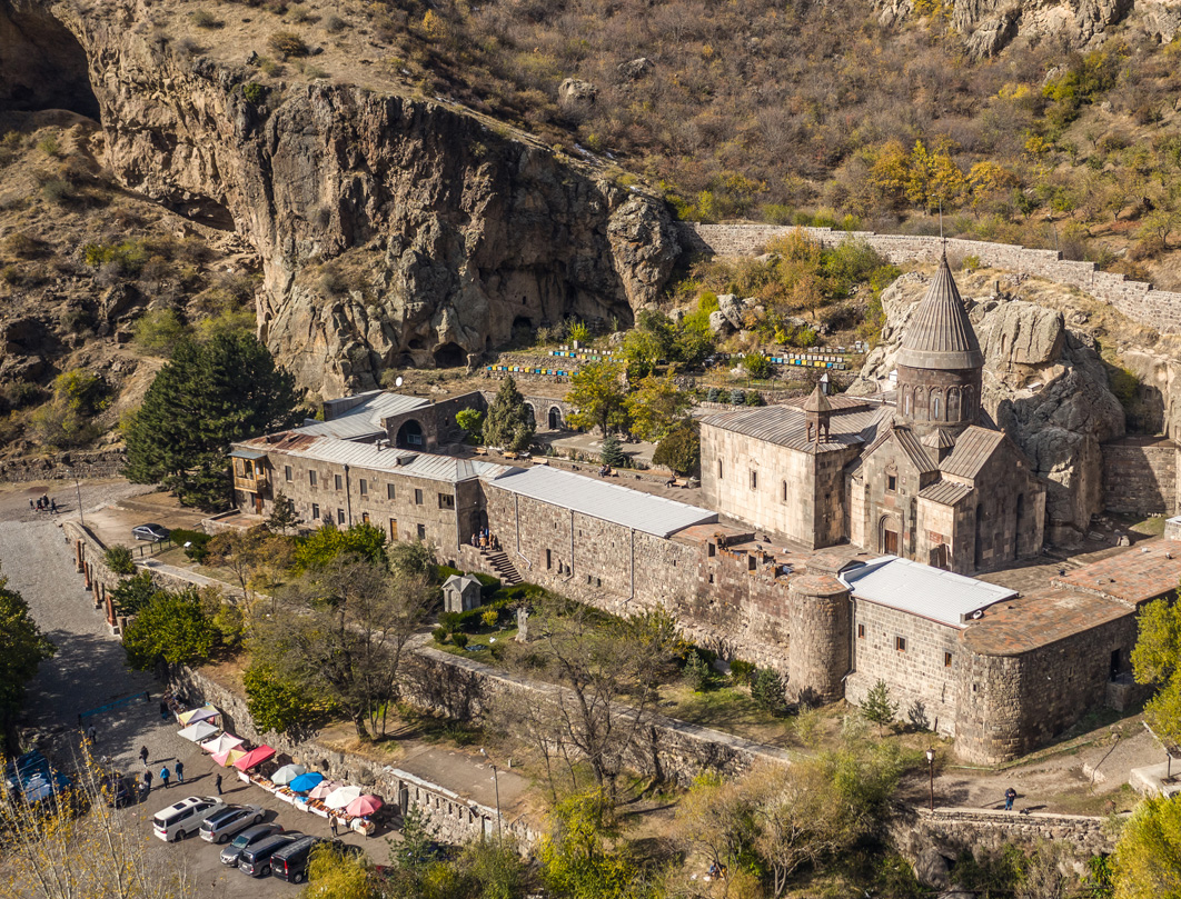 Dopo la prima colazione, partenza verso il sud dell’Armenia e visita del monastero di Khor Virap, dominato dal profilo innevato del grandioso Monte Ararat, in posizione suggestiva nei pressi del confine con la Turchia. Il monastero venne costruito sul luogo in cui si trova il pozzo-prigione (Khor Virap significa “pozzo profondo”) in cui nel III secolo venne rinchiuso San Gregorio l’Illuminatore, l’evangelizzatore dell’Armenia. Partenza per la regione di Vayots Dzor, caratterizzata da panorami di rocce frastagliate e vette selvagge, dove sorge il monastero di Noravank, un monastero circondato da aspre montagne rocciose di colore grigio e rosso, con al suo interno la chiesa a due piani, unica in tutta l’Armenia, di Surp Astvatsatsin, riccamente decorata da bassorilievi. Superato il passo di Vorotan a 2200 m s.l.m. il paesaggio si allarga sui panorami della regione di Syunik, la più meridionale dell’Armenia, caratterizzata dalle radure dell’altipiano meridionale armeno circondate dagli alti picchi delle montagne della catena del Caucaso Minore. Visita del monastero di Tatev, risalente al IX secolo e il più grande e più importante del sud dell’Armenia. Il monastero è di fondamentale importanza per la conoscenza dell’arte e della cultura medioevale armena, fu sede di una famosa università ed è situato in posizione spettacolare su uno sperone di roccia a picco sulla valle del fiume Vorotan. Per il rientro dal monastero, si salirà a bordo delle “Le Ali di Tatev”, la funivia più lunga del mondo (5.7 km, 11 minuti di viaggio) dalla quale si potranno ammirare gli splendidi panorami della valle del Vorotan. Arrivo a Goris, cena in un piccolissimo ristorante a conduzione familiare ricavato nel salone di un’antica casa in pietra del villaggio con i piatti della tradizione regionale preparati dalla padrona di casa. Pernottamento a Goris.