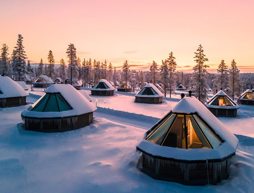 Prima colazione in hotel. Al mattino visita panoramica di Rovaniemi, la “capitale” della Lapponia finlandese che deve la sua fama per essere la residenza ufficiale di Babbo Natale. Visiteremo ovviamente i l Santa Claus Village, proprio sul circolo polare artico: un’attrazione che richiama più di 500000 visitatori all’ anno da tutto i l mondo. Rovaniemi fu quasi completamente distrutta durante la Seconda guerra mondiale. Eleanor Roosevelt, la moglie del presidente degli Stati Uniti Franklin D. Roosevelt, nel 1950 venne a visitare Rovaniemi per assistere al processo di ricostruzione. Voleva visitare i l circolo polare artico e allora dei funzionari della città si precipitarono a costruire un bungalow a otto chilometri a nord della città. Questo bungalow ha segnato la nascita del Villaggio di Babbo Natale e si trova ancora oggi vicino all’ ufficio postale di Babbo Natale. Dal 1985 ad oggi Babbo Natale ha ricevuto 15 milioni di lettere da 198 paesi: questo fa dell’Ufficio postale di Babbo Natale un posto da non perdere per chi visita i l Villaggio di Babbo Natale. Al termine della visita, partenza verso Nord per Saariselkä dove ci attende un pernottamento speciale nei bellissimi igloo di vetro del Northern Lights Village. Cena e pernottamento.